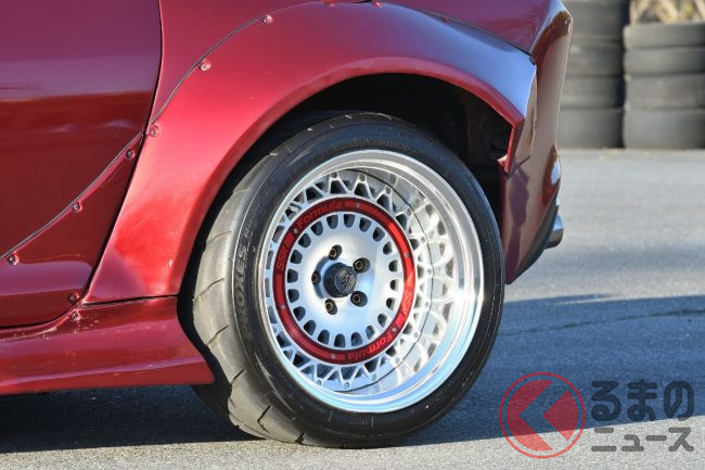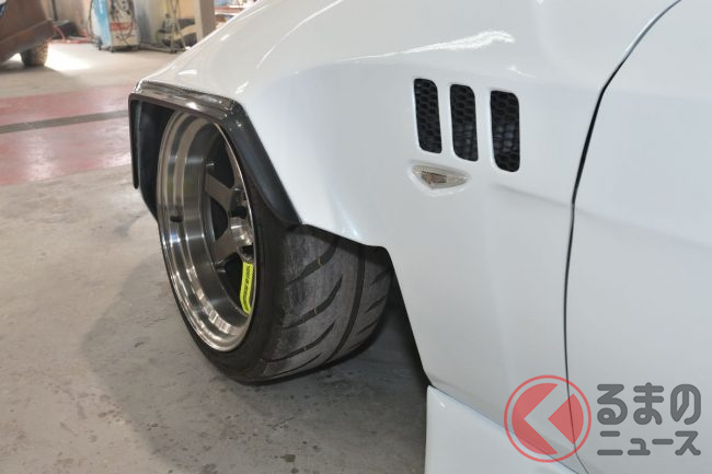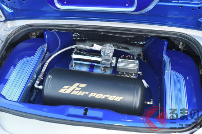 足回りはレイズ製17インチアルミホイールにトーヨー製タイヤ「PROXES R888R」(235/45ZR17)を合わせ、さらにAirForce製のエアサスペンション(走行車高機能復帰付き)を組み込んでいます。