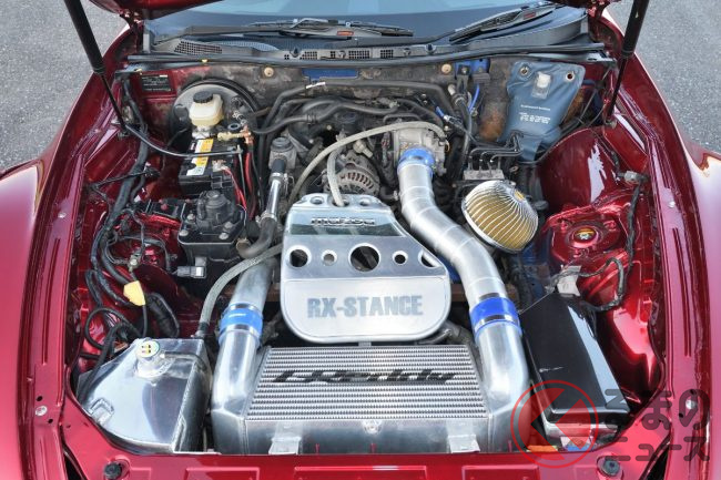 パワートレインはロードスターと同様の1.5リッター直列4気筒エンジンを搭載。エアクリーナーはBLITZ製のものを、タワーバーはLAILEのものを取り付けています。
