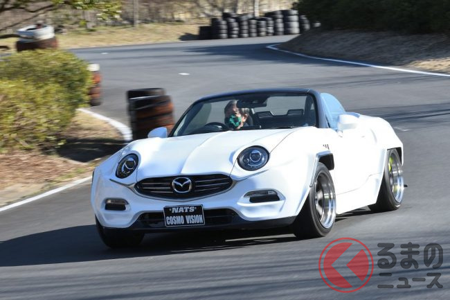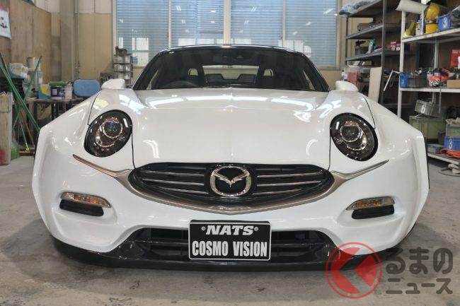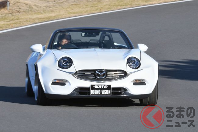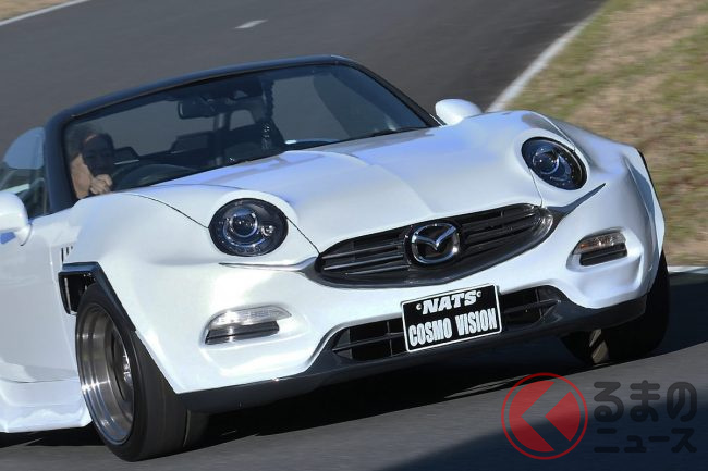 マツダ「新型コスモ」!? 旧車デザイン&ロータリーエンジンじゃないエンジン採用の「ロードスター」! 現代に復活な「NATS COSMO VISION」ってどんなクルマ?