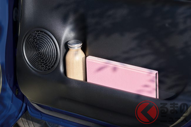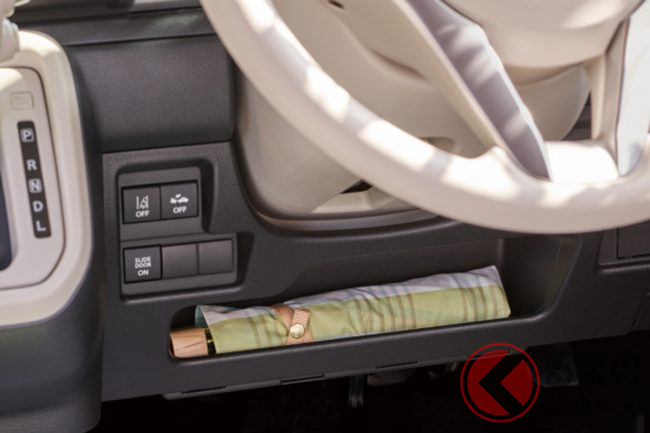 ボディサイズは全長3395mm×全幅1475mm×全高1695mm。同社「スペーシア」に匹敵する600mmのスライドドア開口部と、地上高345mmのリアステップにより、乗り降りも容易になっています。一方、スペーシアと比較すると全高は100mmほど低くなっています。