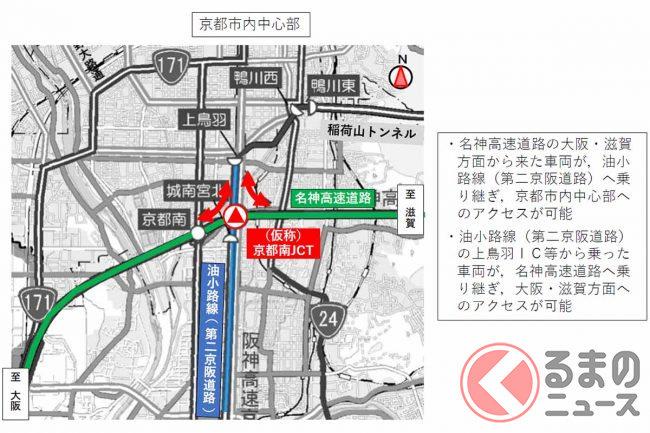 京都市内で交差する名神高速と第二京阪道路に、新たにジャンクションを設置する計画が進行中です。完成すればどれだけ便利になるのでしょうか。また計画はどこまで進んでいるのでしょうか。