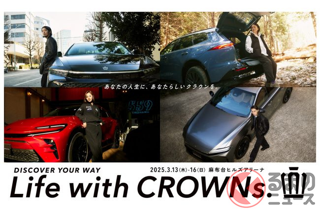トヨタは2025年3月14日から16日まで麻布台ヒルズアリーナで「Life with CROWNs.」を開催すると発表しました。イベントではクラウン4モデルの展示、試乗体験、コラボ展示などが行われます。