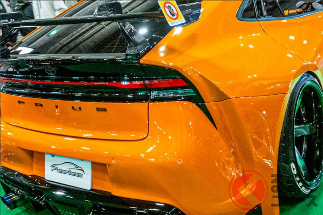 斬新な「プリウス」公開!? ド迫力ワイドボディ&巨大ウィング&NSXオレンジ採用!? ピアレスの「カスタムモデル」はまるでスーパーカー? 市販化の可能性も?