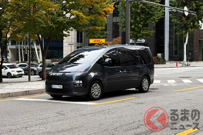 300万円以下! アルファードより巨大な斬新「“4列11人乗り”ミニバン」とは? ツルツルボディ&奇抜な“一文字ライト”採用! ヒョンデ「スターリア」韓国仕様に注目!