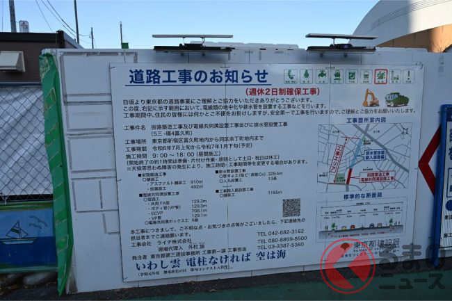 東京都第六建設事務所の「事業概要」によると、全長28.8キロメートルの環4のうち、目白台の現場では775メートルの道路が事業中。現場の区間を住所で示すと、「新宿区西早稲田三丁目」から「文京区目白台二丁目」までとなっています。