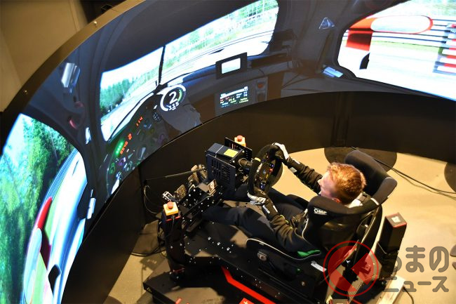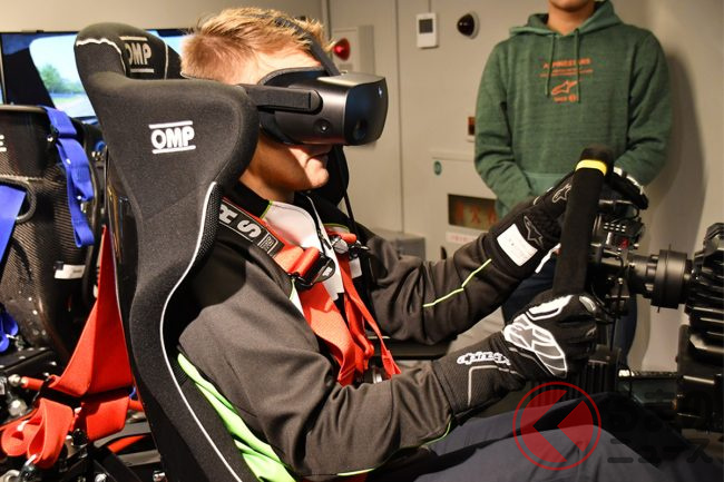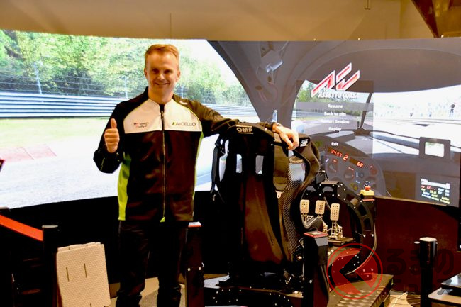 あいさつからすぐに、用意されていた3機のシミュレーターにそれぞれトライをしたコバライネン選手ですが、車両やコースの状況にすぐに適応。序盤から丁寧かつ驚異的に速いペースで走行を続け、その適応力とスムーズさには、会場のシミュレータースタッフも驚いていました。