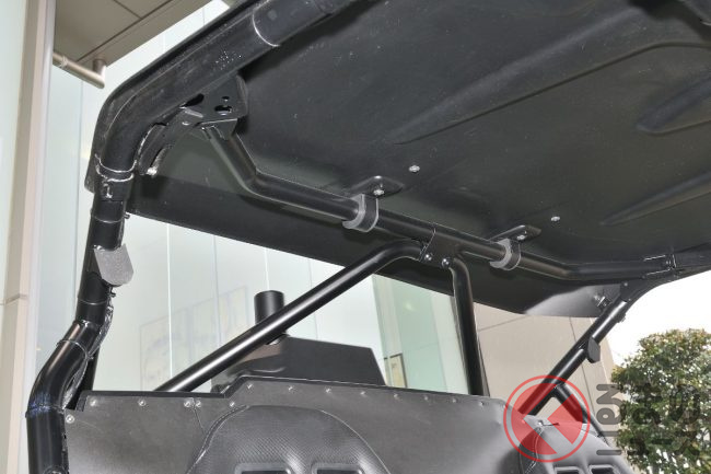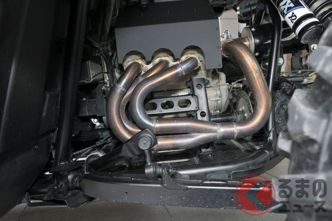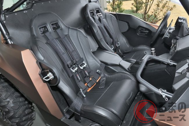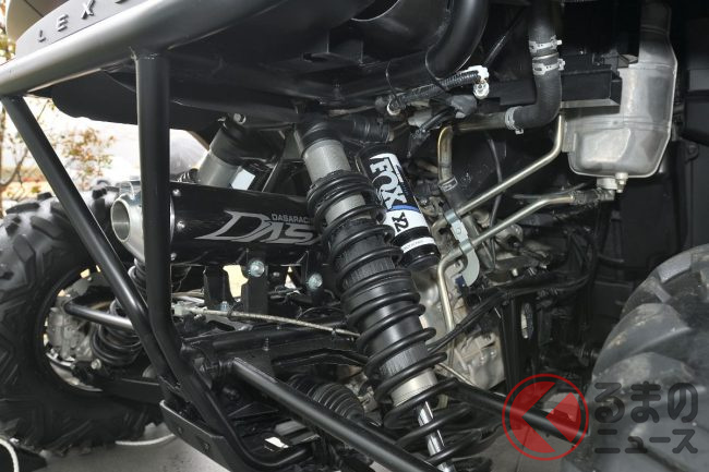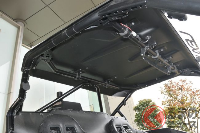 パイプフレームむき出しの武骨なデザインのエクステリアは、「あらゆる自然環境に適した」というプロテクション・ケージをメインに、頑丈なフロントフェンダーやサスペンションカバーを装備。