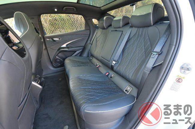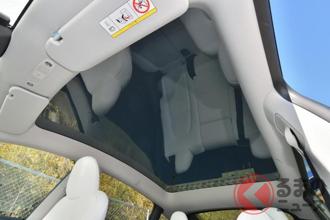 室内に入ってまず感じるのは、ルーフ一面に広がる大きなガラスルーフ。後席のレッグルームがあまりにも広く、ゆったりと座りながら空を眺める贅沢な時間が流れます。