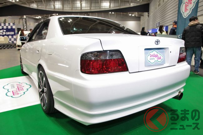 5速MT搭載! トヨタ「チェイサー」実車展示! 高性能「280馬力の直6」×精悍エアロがカッコイイ! 車好き大興奮の「貴重な“ちょいワル”スポーツセダン」 KINTOで貸出へ