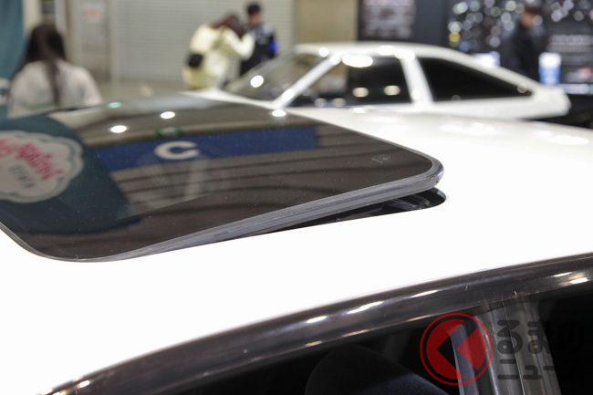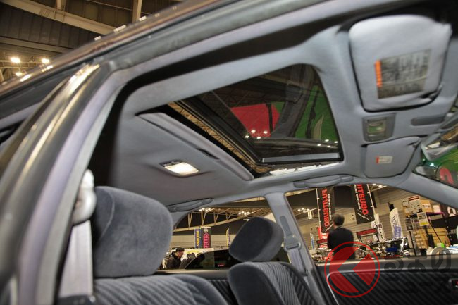 今回展示されたのは1998年式のツアラーV前期型。5速MTを搭載するモデルです。オプションのサンルーフが装着されているほか、エクステリアも純正のリップスポイラーやサイドスカートなどが選択された、「オプション増し」仕様です。