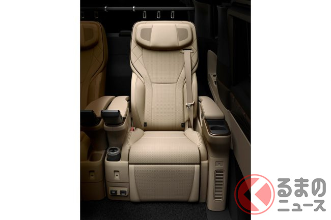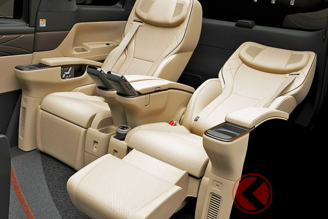 電動リクライニングやリフレッシュ機能、温熱・ベンチレーション、スピーカー内蔵の大型ヘッドレスト、前後150mmが電動伸縮できるオットマン、さらに3種類の香りのなかから選択可能なフレグランス機能まで、後席の乗員をもてなすための贅を尽くした仕様となっています。