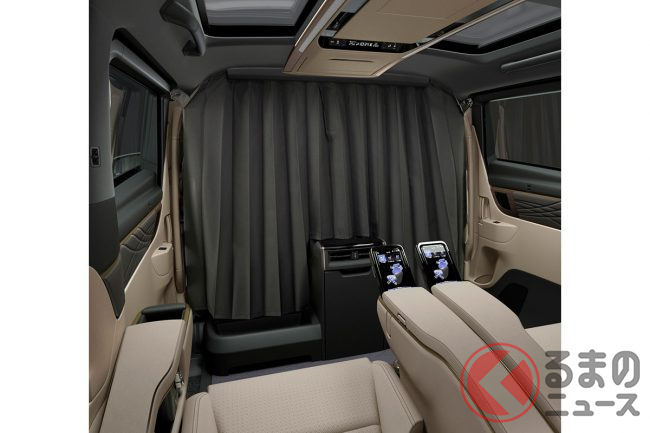 「LMは、前席との間にパーティション(仕切り)を設け、後席が完全に独立した空間となっていますが、アルファード スペーシャスラウンジは、カーテンで仕切っているのみとしました。