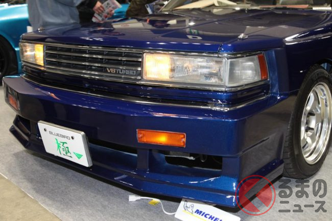 斬新「ブルーバード」実車展示! カクカク「旧車デザイン」&ド迫力フェンダー採用! “ヤング仕様”な日産校の「ブルーバード・極」ノスタルジック2デイズに登場!