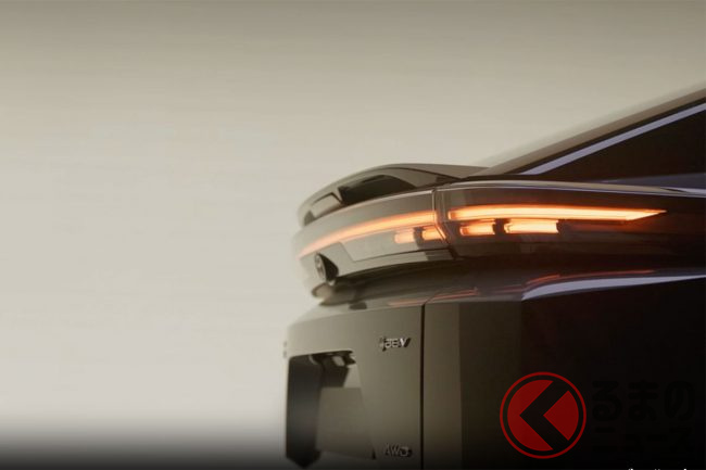 同時に公開されたティーザー映像を見ると、流麗なクーペ風のルーフを備えたクルマだということがわかります。また、「プリウス」などと同様なハンマーヘッドのヘッドライトと、ボディ幅いっぱいのテールランプといたデザインも確認できました。AWDのエンブレムも取り付けられています。