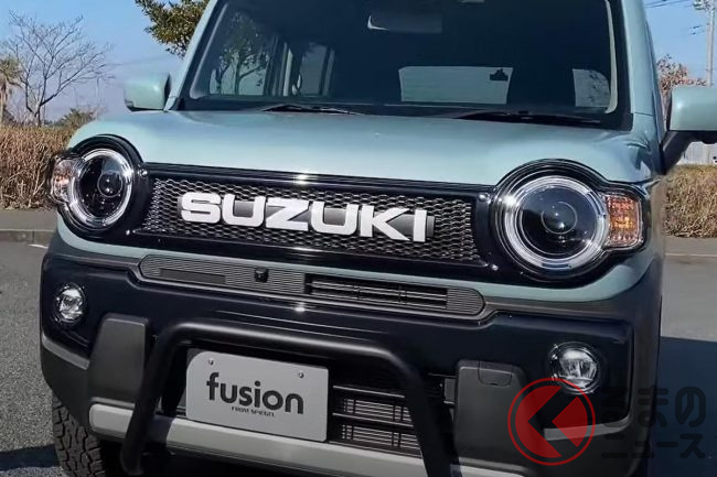 超ゴツ顔のスズキ「ハスラー」発表! 本格オフロード感じる「SUZUKI」ロゴが超カッコイイ! 斬新すぎる「レトロ軽SUV」カスタム仕様がラスターから登場!