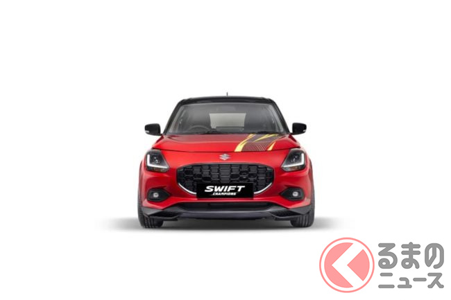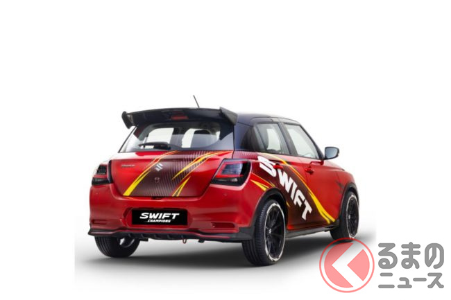 “超スポーティ”なスズキ新「スイフト」登場! ド迫力「リアウィング」に精悍エアロ採用で超カッコイイ! 伝統を祝う「チャンピオンズコンセプト」印国で披露