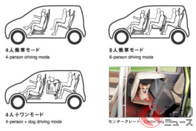 助手席やエクストラシートに搭載されたクレートをはじめ、愛犬を安心して乗せるための工夫が満載のクルマとなっています。