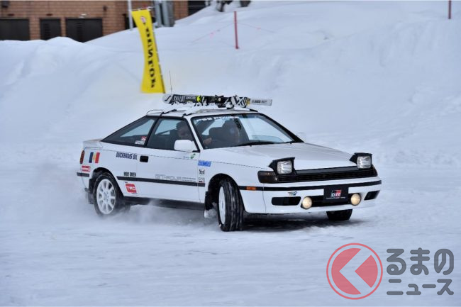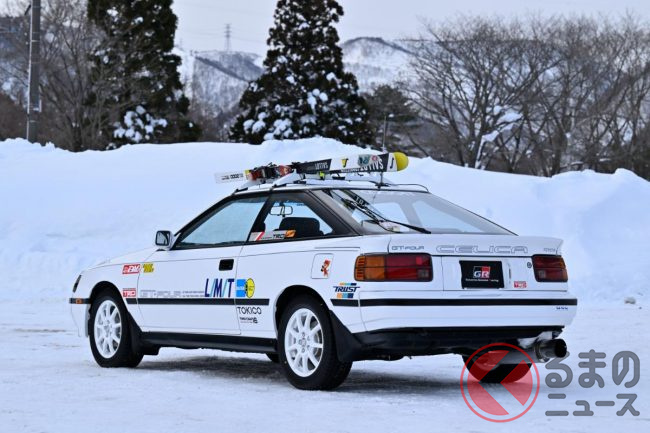 トヨタ斬新「セリカ」実車展示! まさかの「私をスキーに連れてって」仕様が雪上爆走も! “オジサン世代”から熱視線集まる「スペシャリティカー」がスゴかった!