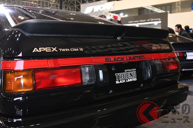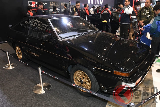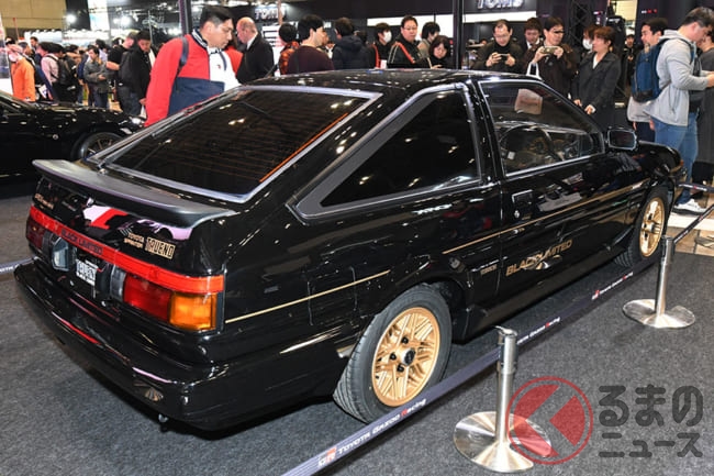 特別なトヨタ「AE86トレノ」実車展示で話題に!? 「真っ黒ボディ×ゴールド」がめちゃカッコいい! 当時170万円で買えた「ブラックリミテッド」とは?