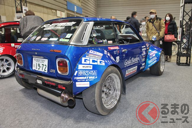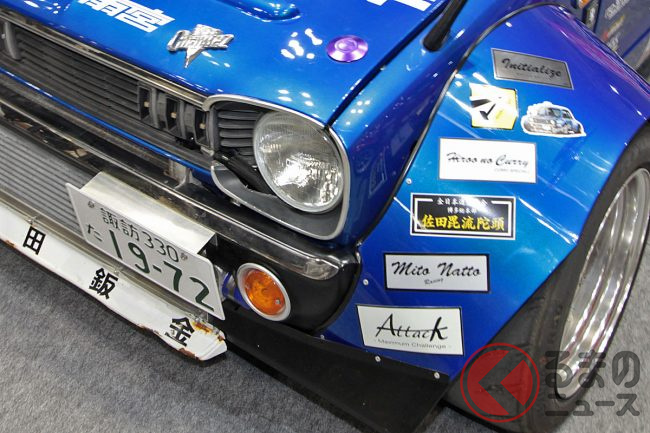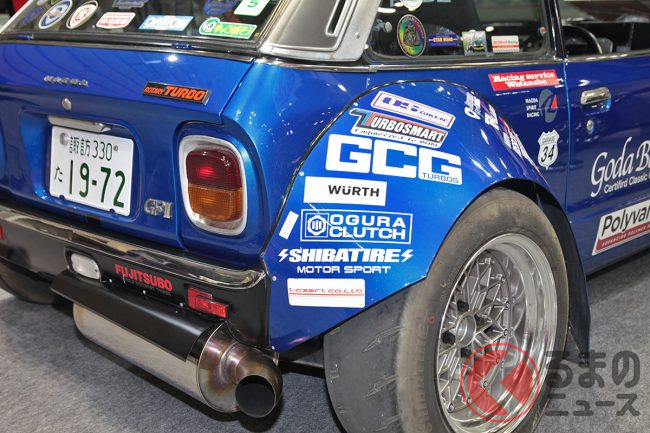 毎年、注目すべき展示車が多いのが特徴ですが、なかでも特に驚かされたのが、「レストアパーツ.com with 郷田鈑金」ブースで郷田鈑金が用意した、「オーバーフェンダーがめっちゃ飛び出た軽自動車」でした。どのようにして製作されたのでしょうか。