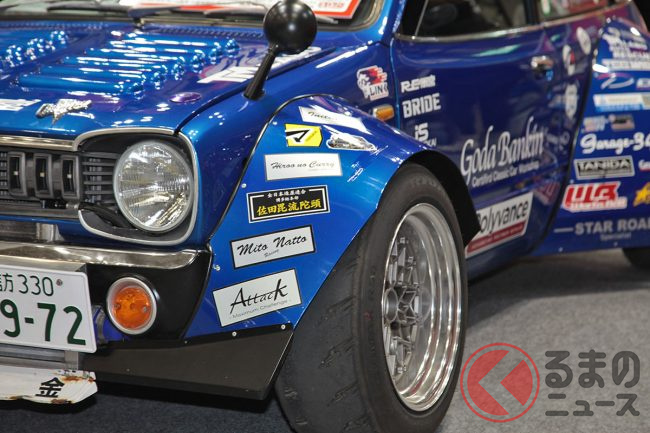 クラシックカーイベント「Nostalgic 2days」の「レストアパーツ.com with 郷田鈑金」ブースには、ものすごいフェンダーを持った軽自動車が展示されていました。どのようなクルマなのでしょうか。