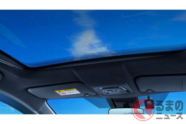 両モデルに共通する改良ポイントは、パノラマルーフの採用です。従来のムーンルーフよりガラスエリアが広く、室内に圧倒的な開放感をもたらします。また従来の「HYBRID」バッジを新デザインの「HEV」にしたのも今回の特徴です。