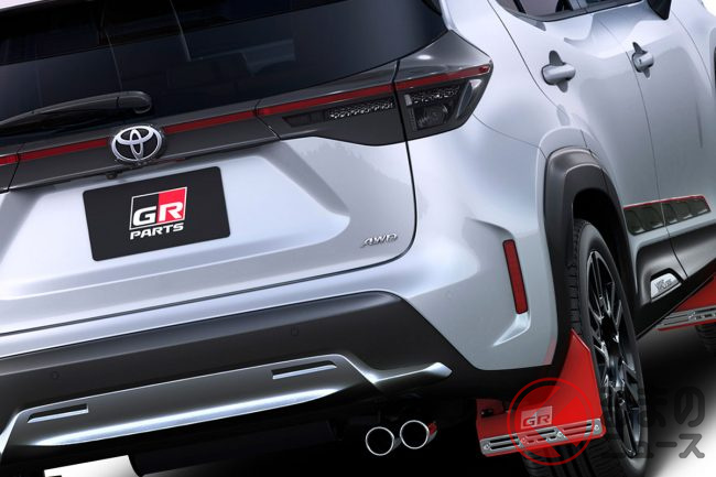 トヨタ「コンパクトSUV」が“本格スポーツ仕様”に激変!? 「マッドフラップ&2本出しマフラー」がカッコいい! GRパーツでカスタムした「ヤリスクロス」とは?