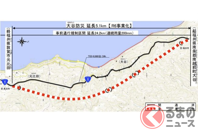 北陸道を利用する長距離ドライバーはともかく、生活利用を含めた中距離移動にとっては「生命線」でありながら「アキレス腱」とも言うべき脆弱区間となっています。もちろん、北陸道が寸断された際の緊急輸送路としての役割も求められています。そのため、強靭性を高める事業が計画されてきました。