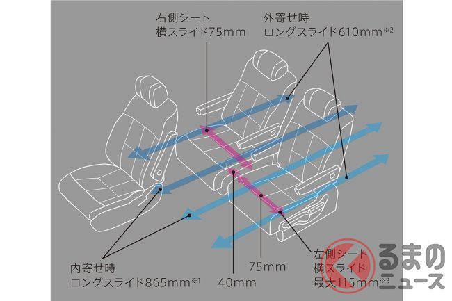 また、後席には「両側パワースライドドア」や、両側アームレスト付きの「2列目キャプテンシート」、3列目がフラットなラゲッジスペースに変身させることができる「分割床下格納シート」も標準で装備するなど、エントリーモデルながら利便性や快適性に配慮した設定となっているのも大きな魅力です。