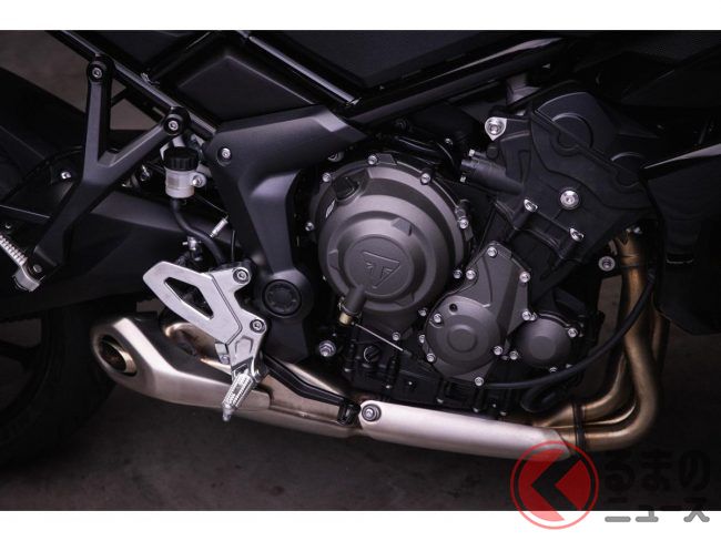 パワートレインには、トライアンフの象徴ともいえる660ccの3気筒エンジンを搭載。回転域全体でピークトルクの90%以上を発揮し、最高出力81馬力・最大トルク64Nmを生み出します。