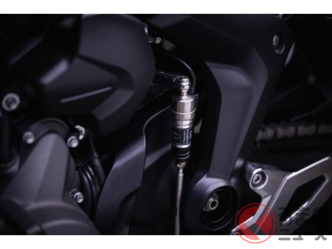 さらに、ターンバイターンナビゲーションに対応したBluetooth接続機能や、クルーズコントロール、アップダウン対応のクイックシフター「トライアンフ シフトアシスト」など、大型モデルに搭載される先進テクノロジーも標準装備。また、最適化コーナリングABSとトラクションコントロールも採用されています。
