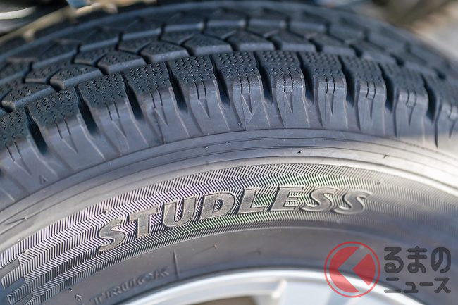 まずスタッドレスタイヤは、雪道や氷上での走行性能を向上させるために、低温でも硬化しにくいゴムを使用しています。