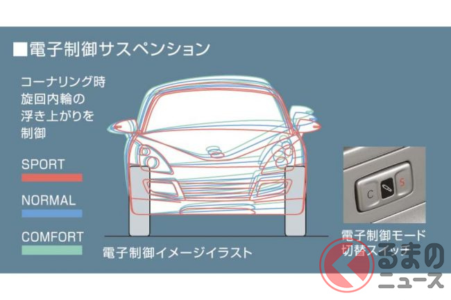 足回りには、3段階に切替可能な電子制御サスペンションを装備。走行シチューションごとに切り替えることで、最適かつ快適な走りを生み出します。
