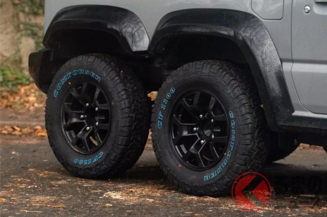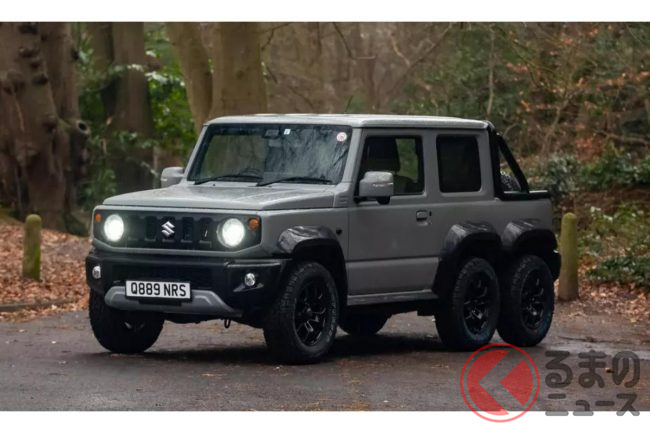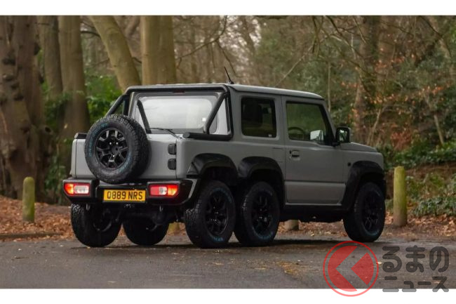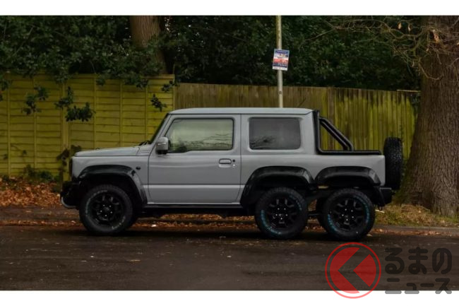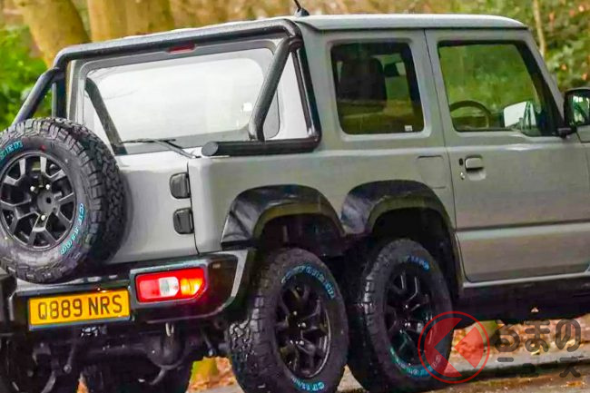 “6輪”のスズキ「ジムニー」登場! タフすぎる「シエラ」のトラック仕様! 駆動は4輪しかしない「6×4カスタムモデル」英国で出品