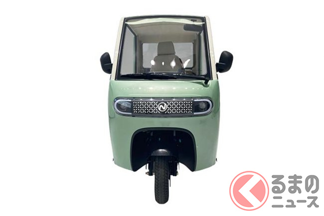 斬新レトロな「3人乗りトライク」に反響多数! 「近未来感あるライトがイイ」「丸みボディがカワイイ!」の声! 普通免許で乗れる“ツルツルデザイン”の「e-NEO Light」とは