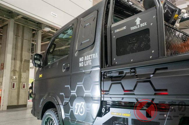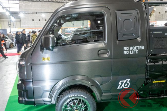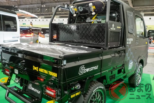CAR STYLEは大阪オートメッセ2025で、スズキ「キャリイ」を改造したカスタムデモカー「AGETRA GEAR TOUGH」を展示しました。どのようなモデルなのでしょうか。