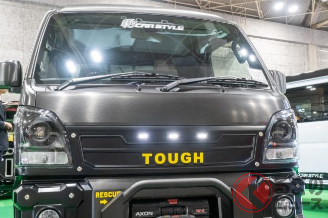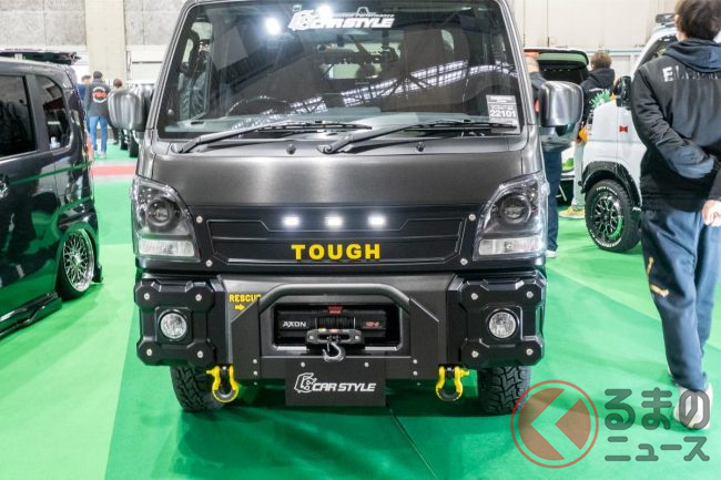 “超ゴツい”スズキ「キャリイ」がスゴイ! 超タフ顔×ウィンチ×シャコ上げで超カッコイイ! CAR STYLEの「AGETRA GEAR TOUGH」とは