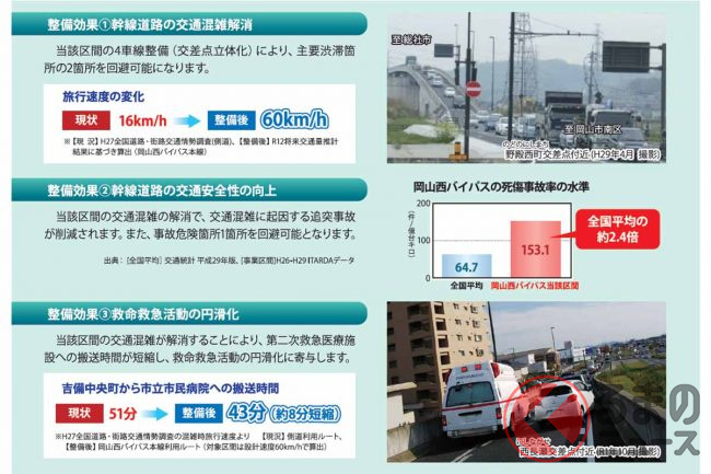 いっぽう岡山県民からは「広島は主要道路がどんどん整備されていて羨ましいです」という声も。とはいえ、岡山県内でも国道2号の改良・立体化は各地で着々と進んでいるところで、近いうちに着工を含めて事業が目に見える状態になっていきそうです。