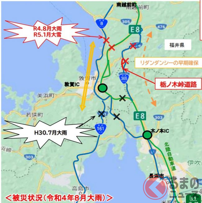 2022年には国道8号が豪雨で被災するなどし、関西~北陸の代替ルート確保などネットワーク強化が課題として浮き彫りになりました。