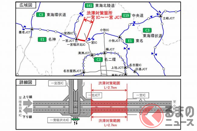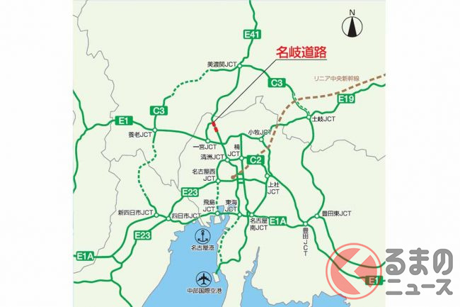 これまで東海北陸道の交通流がすべて名神に流れ込んでいたため、一宮JCTは大渋滞ポイントとして知られていました。東海北陸道が伊勢湾岸道へつながれば、交通分散により混雑緩和が期待されます。