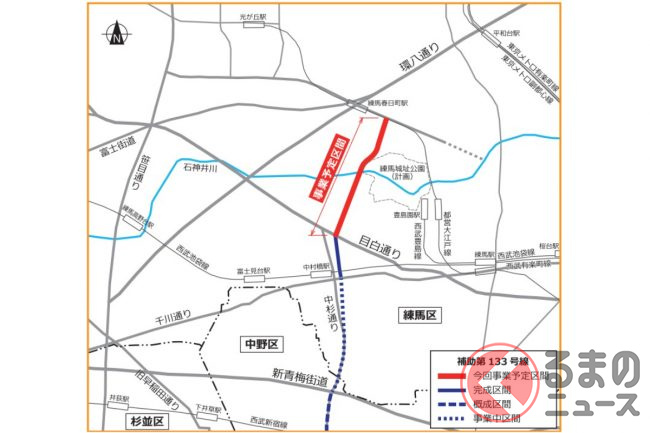 東京都建設局は2025年3月19日、「中杉通り」と呼ばれる都市計画道路「補助第133号線」について、新たに練馬区内の約1.2kmを事業着手したと発表しました。