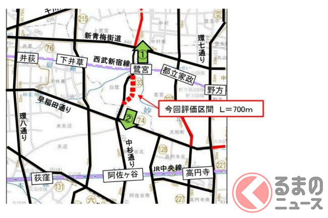 この区間が開通することで、環八通りに出るしかなかった練馬区沿線にとって、悲願の南北軸が誕生することになります。また杉並・練馬エリアにとっては、まっすぐ北上して環八通りへアクセスできるようになります。