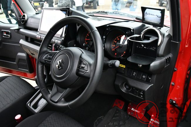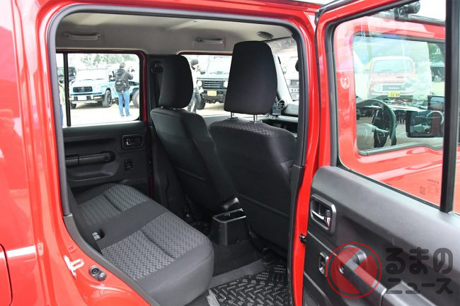 正式には、展示されていたのは先日発表された国内仕様のジムニーノマドではなく海外仕様の右ハンドルモデルなのですが、発表以来注文が殺到し受注が停止、その影響により全国で予定されていた展示会も中止になるなか、貴重な5ドアモデルに触れられる機会ということで、アルパインの製品体験と合わせて実車を確認する人が多く見られました。