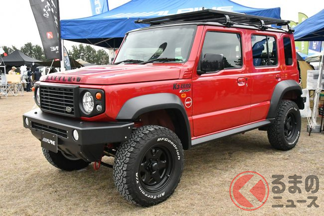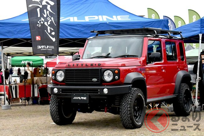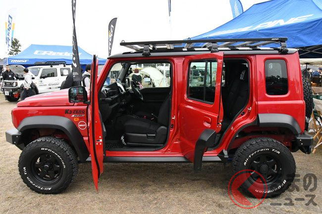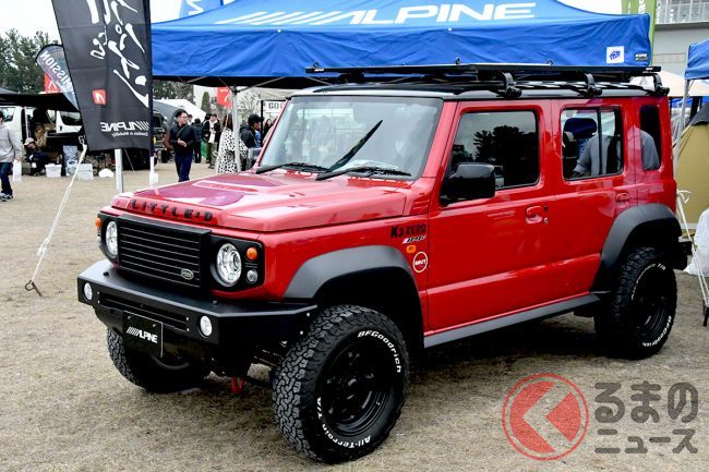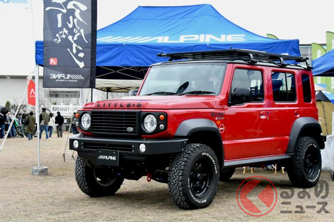 アルパインブースのなかでも特に注目を集めていたのは、ジムニーの5ドアモデルです。