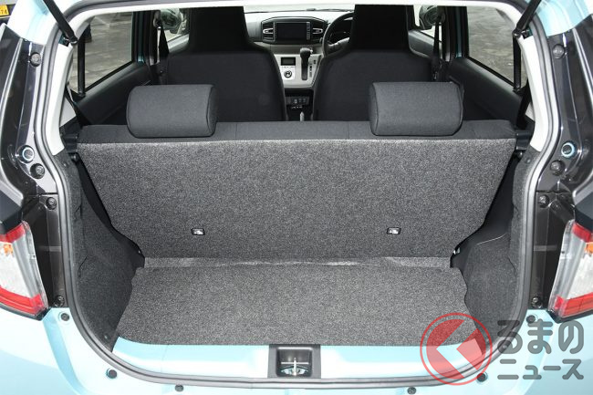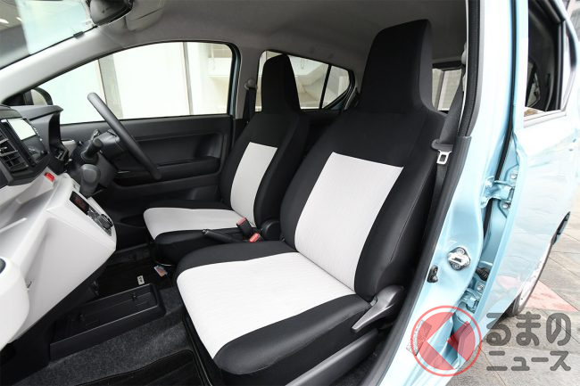 エアバッグは運転席+助手席、ABSだけでなく横滑り防止装置も標準。「スマートアシストIII」と呼ばれるADAS(衝突被害軽減ブレーキなど)、コーナーセンサー、バックギアに入れると自動的に動くリアワイパー、キーレスエントリー、エアコン、パワーウインドウ、集中ドアロックまで付いているのだ。ベースグレードで何ら問題なし。