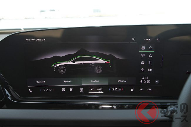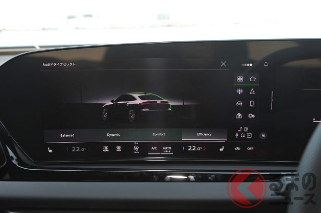 新機能としては助手席用のタッチスクリーン「MMIパッセンジャーディスプレイ」も採用。ナビやオーディオなどの一部車載機能の操作に加え、走行中も助手席で映像作品が楽しめるようになり、エンタメ性も強化されています。