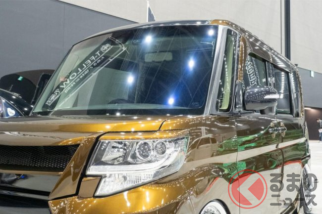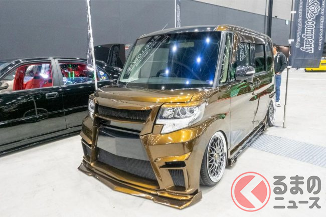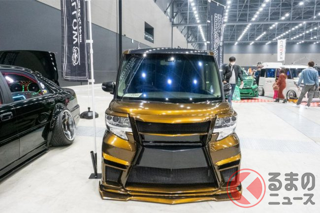 2025年3月15日から16日にかけて行われたカスタムカーイベント「名古屋オートフェスティバル2025」で、ダイハツ「タント カスタム」のフロントフェイスをレクサス風に改造したカスタムカーが展示されました。