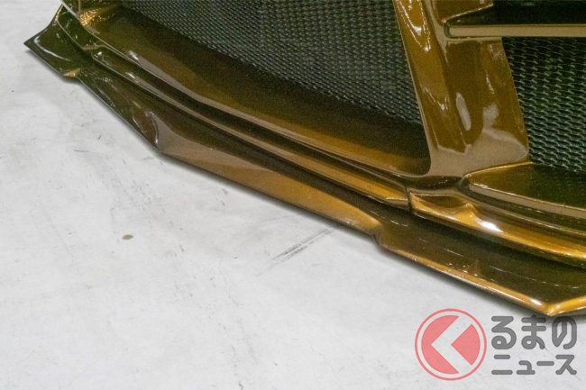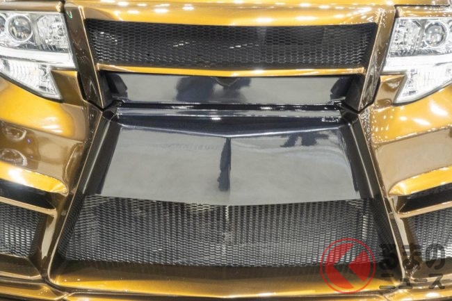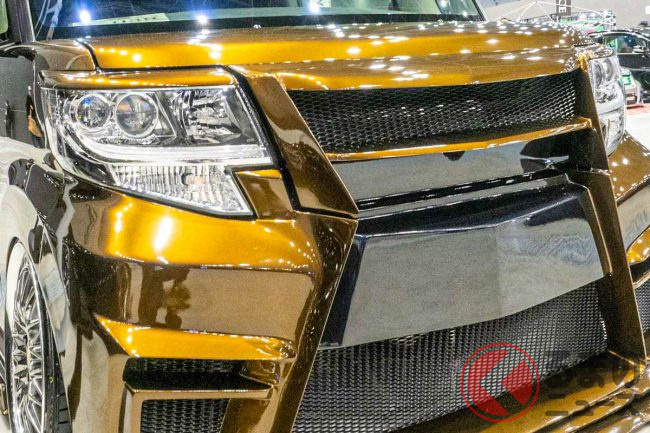 今回名古屋オートフェスティバル2025に登場したカスタムカーは、上級志向のタントカスタムを大胆に改造。なかでも特徴的なのは、フロントグリルがレクサスの「スピンドルグリル」を思わせる形状になっていることです。