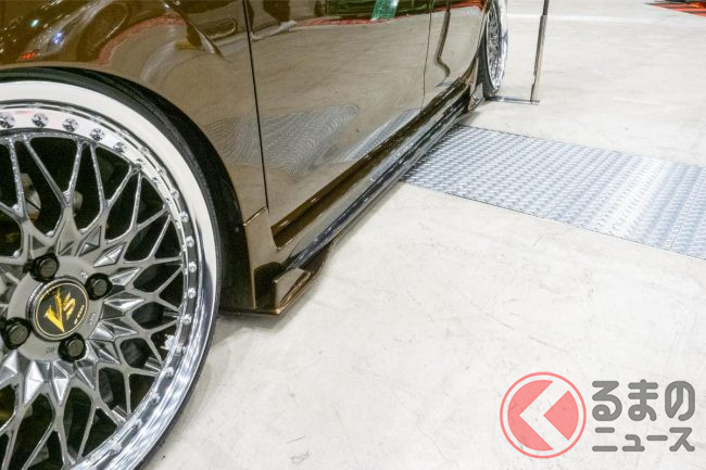 さらに車体は激しくローダウンされたほか、フロントスポイラーやサイドスポイラーやなど様々なエアロパーツが装備され、原型がわからないほど姿が変化しています。