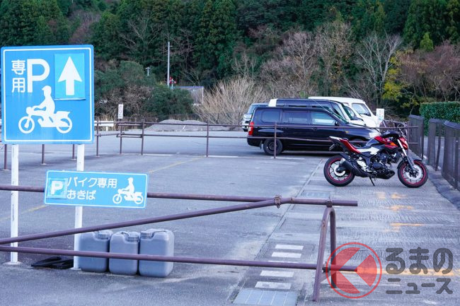 「バイクの駐車スペースが遠いから、近いクルマの駐車場にとめたい」「クルマの駐車場の方が広いから」など、自分の都合を優先させているライダーもいるかもしれませんが、第一に考えられる理由として「バイクの駐車スペースが少ない」という現状が挙げられます。